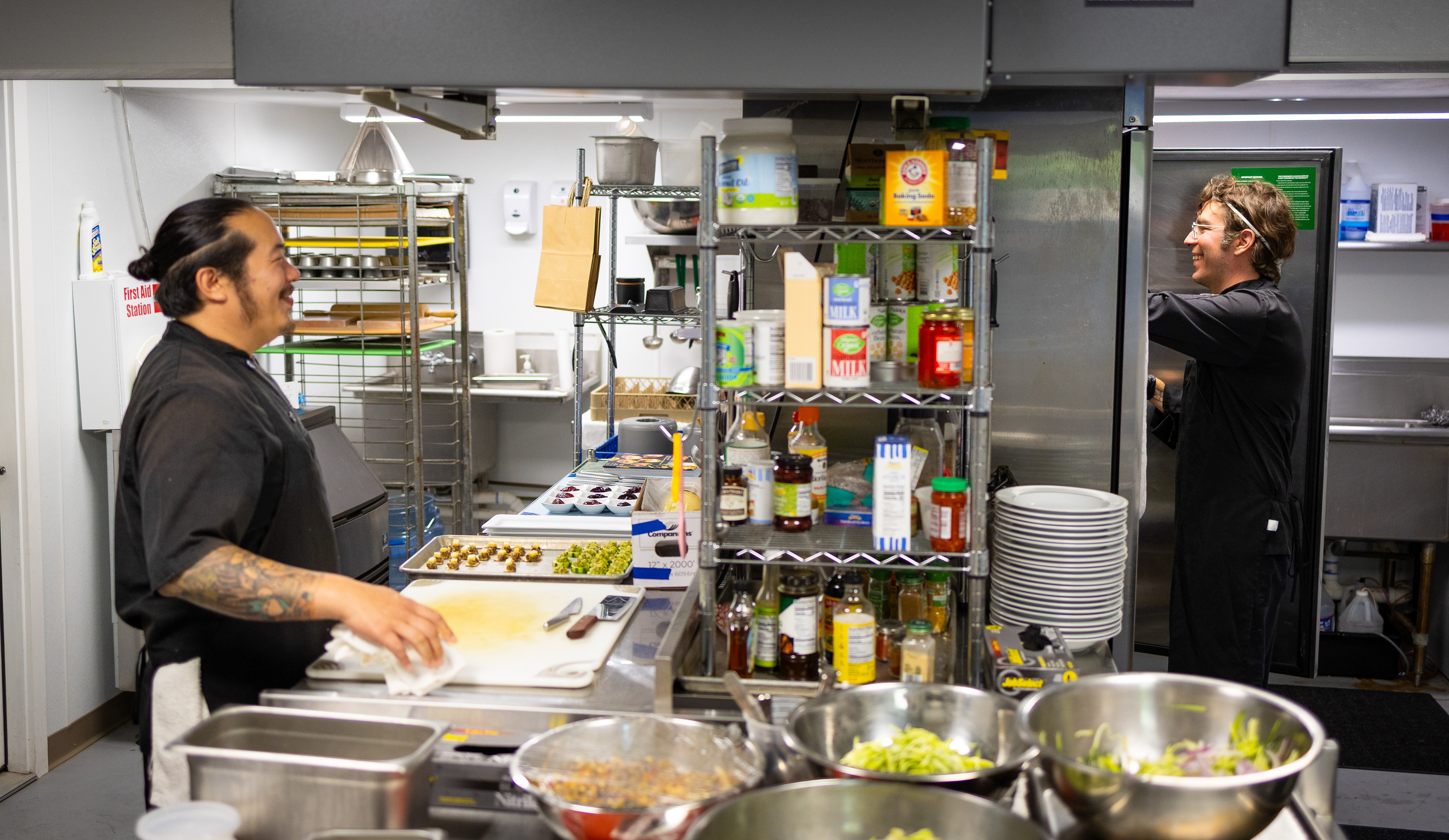 Sous Chef Dan Wongprapan, left, and Shropshire prepare for dinner service on July 23, 2025 in the kitchen of the President’s Cottage.