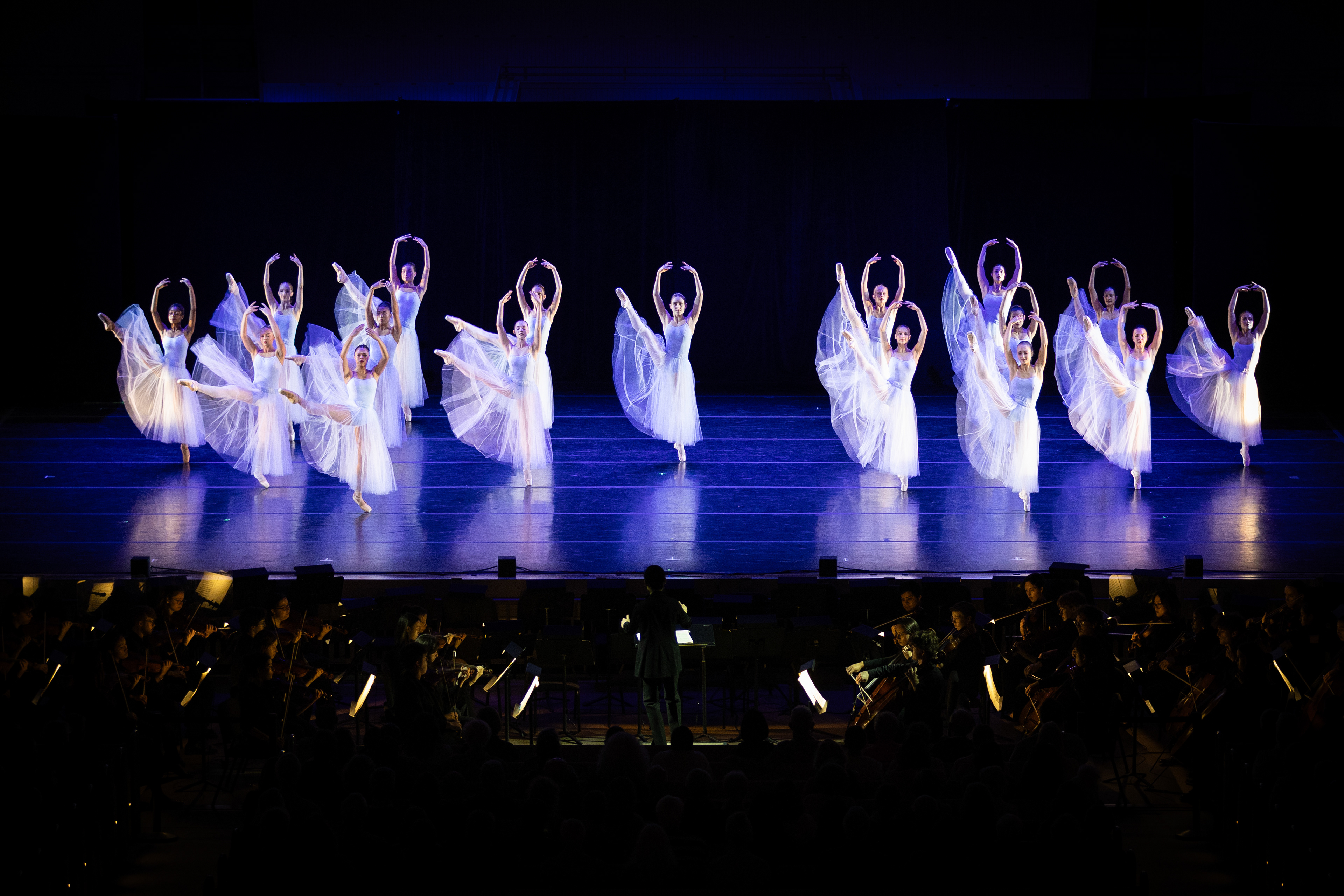 Chautauqua School of Dance students, joined by the Music School Festival Orchestra perform Serenade choreographed by Sasha Janes on Monday, July 21, 2025 in Chautauqua, New York.